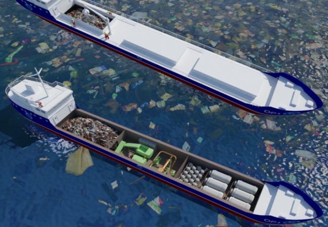 На основі старого корабля українці розробили плавучий сміттєпереробний завод для очищення океану