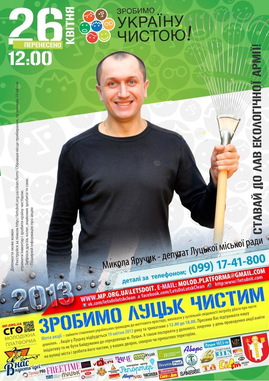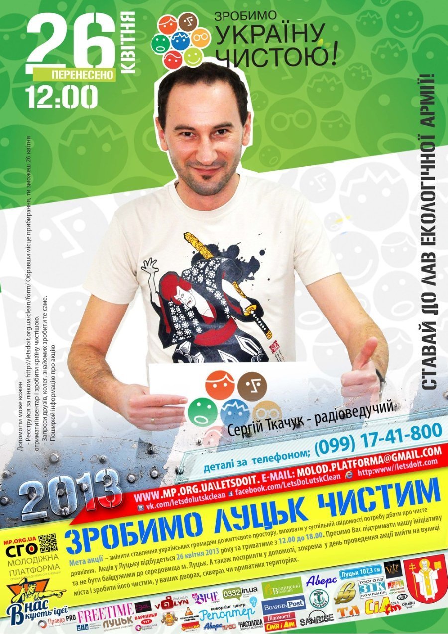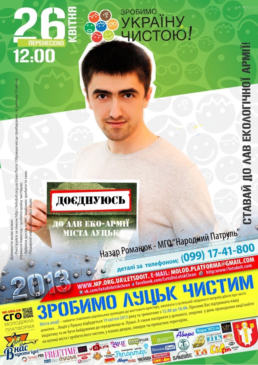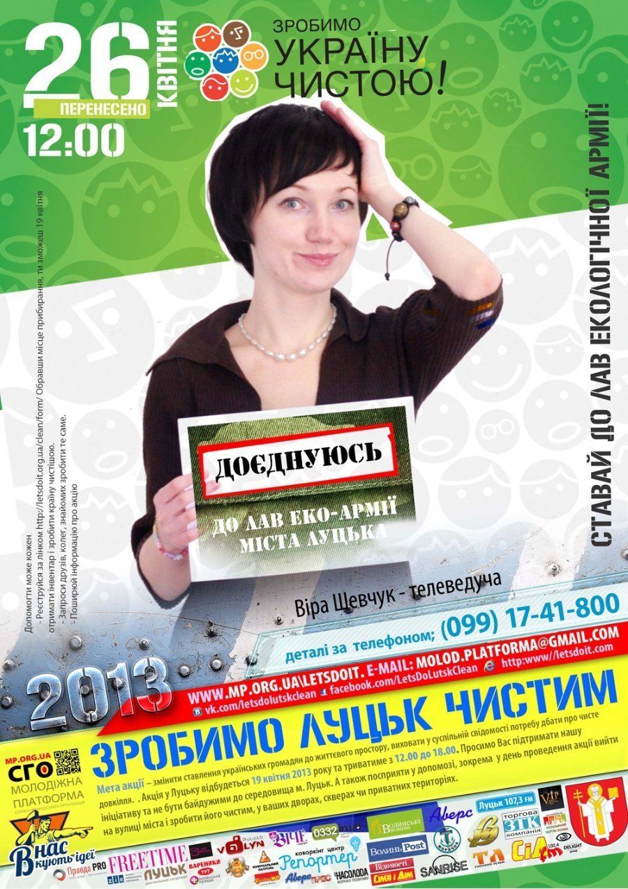 Організатори акції «Зробимо Луцьк чистим!» опублікували плакати з відомими лучанами та волинянами, які закликають приєднатися до заходу.