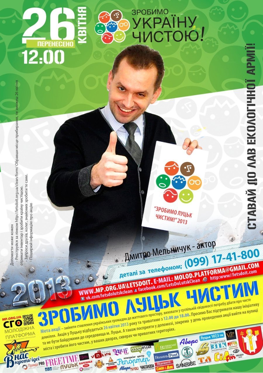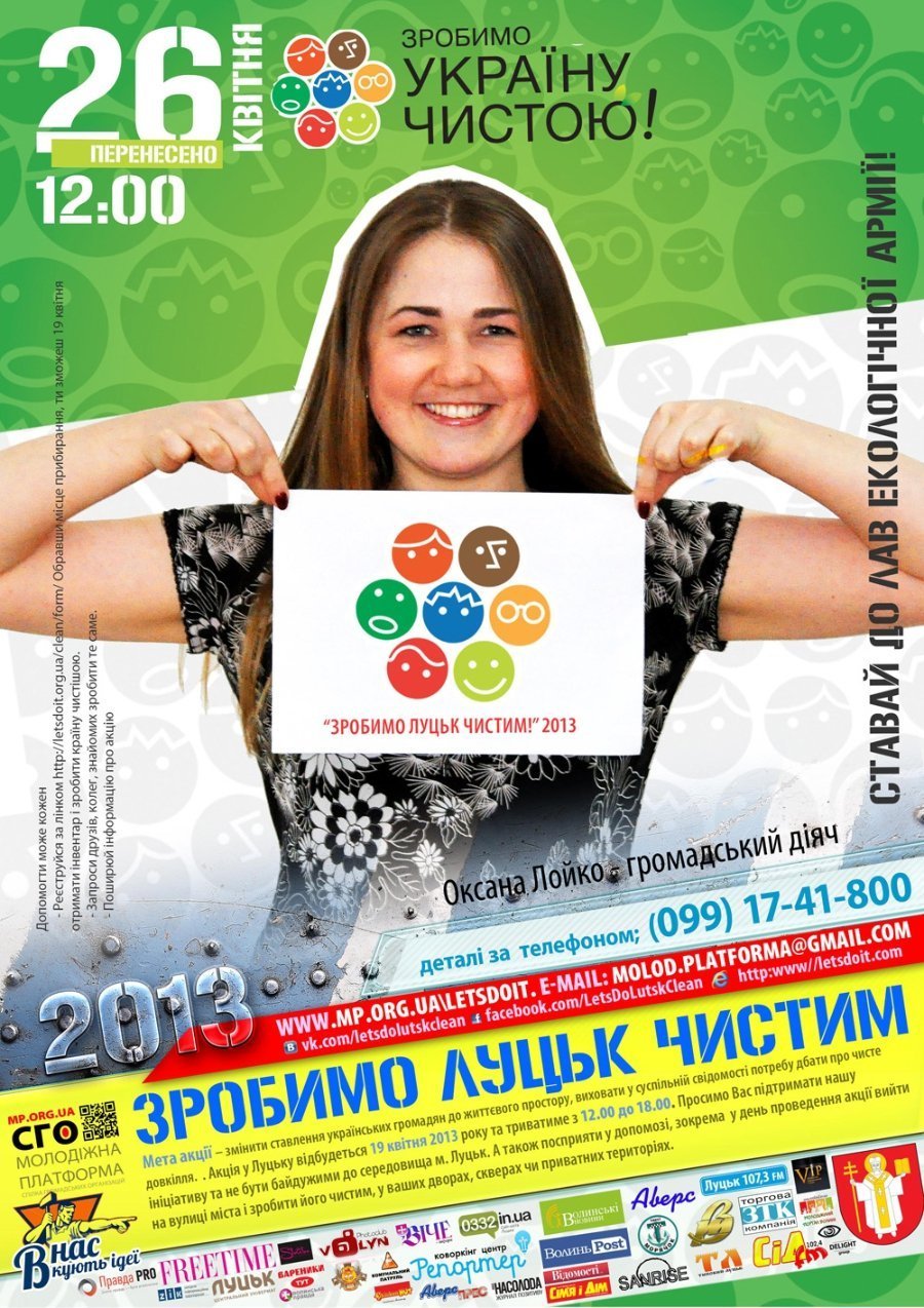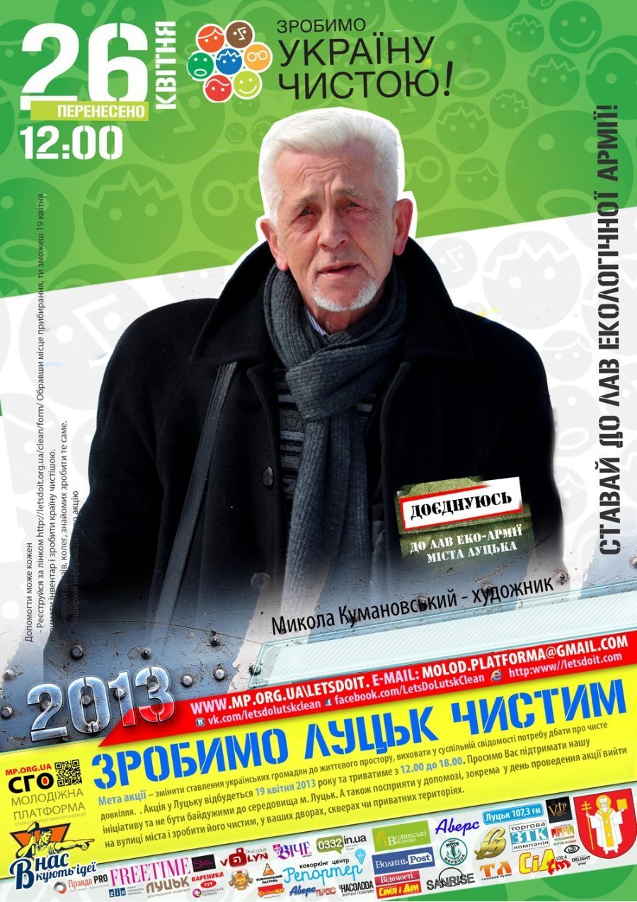 Організатори акції «Зробимо Луцьк чистим!» опублікували плакати з відомими лучанами та волинянами, які закликають приєднатися до заходу.