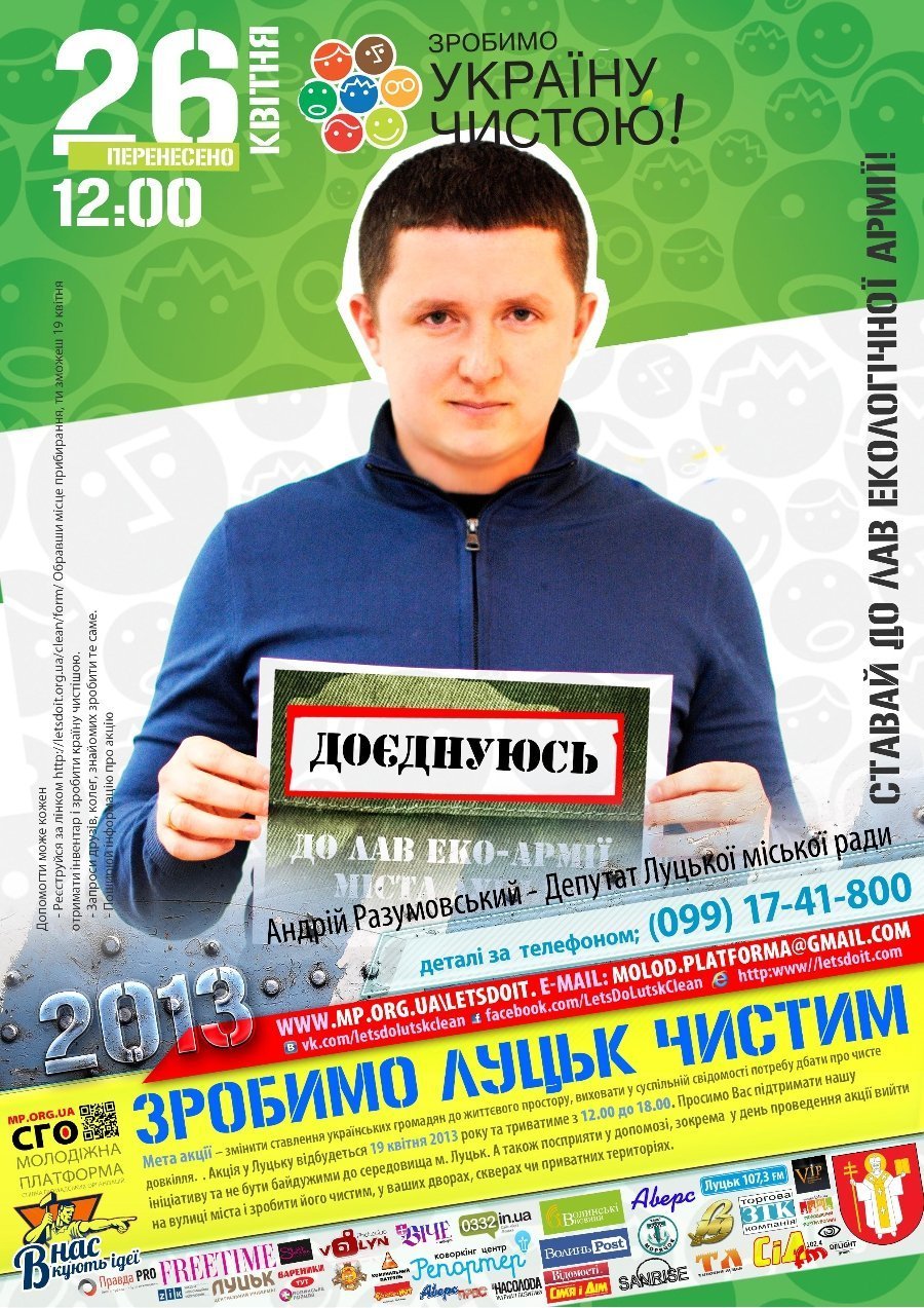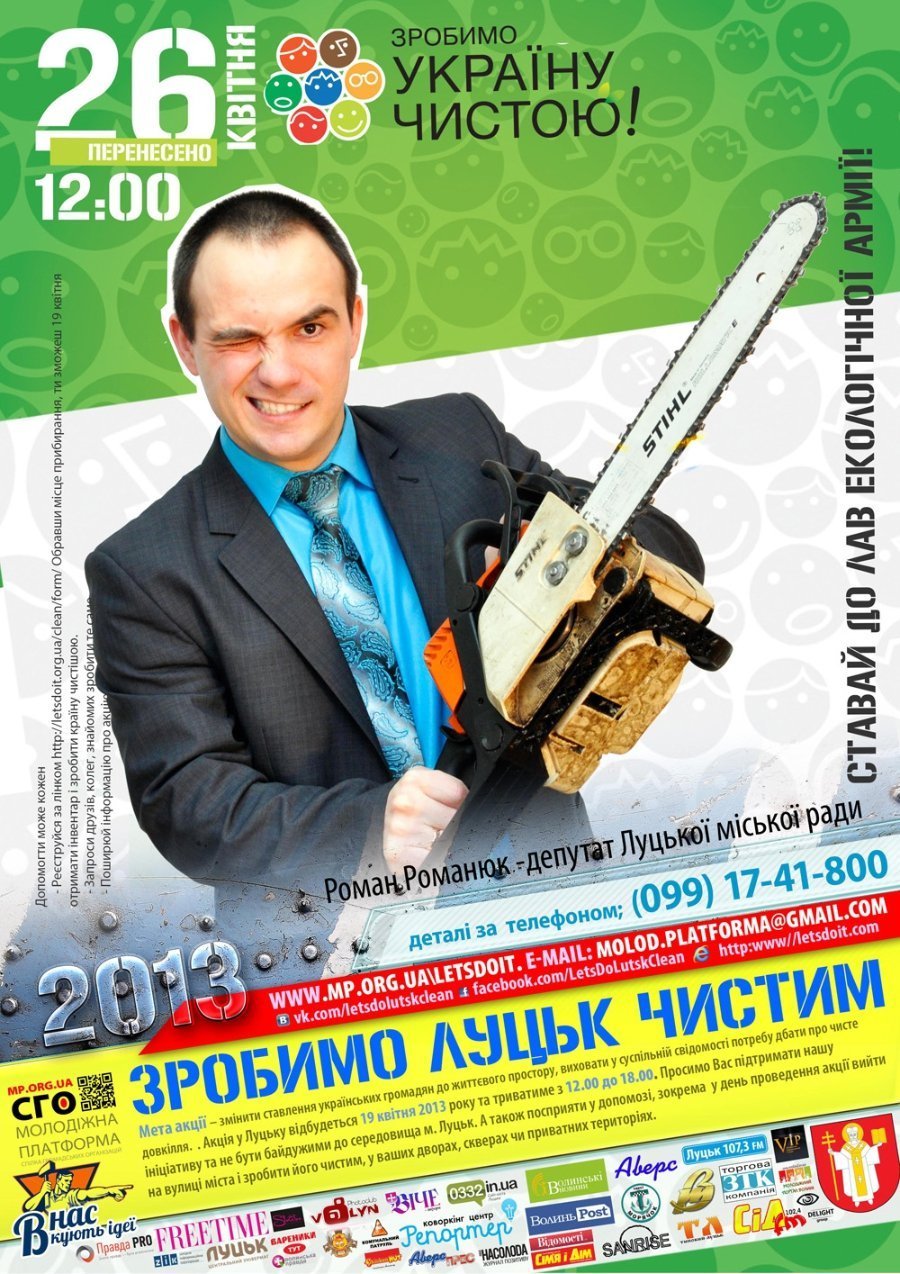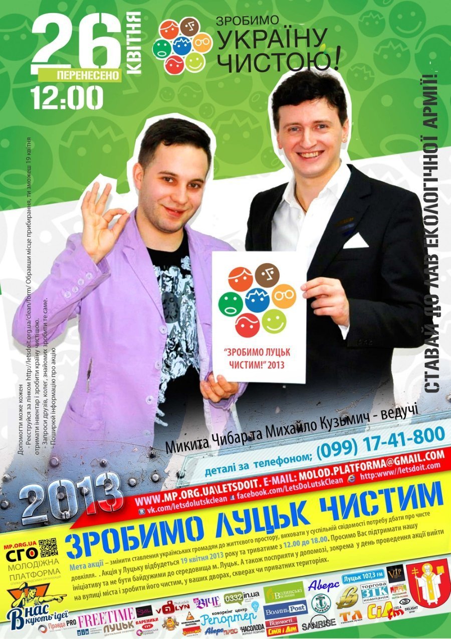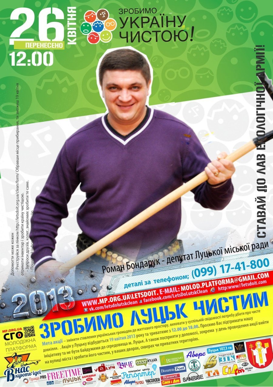 Організатори акції «Зробимо Луцьк чистим!» опублікували плакати з відомими лучанами та волинянами, які закликають приєднатися до заходу.