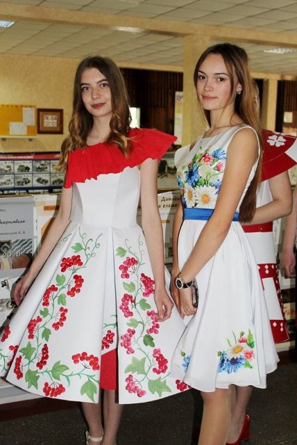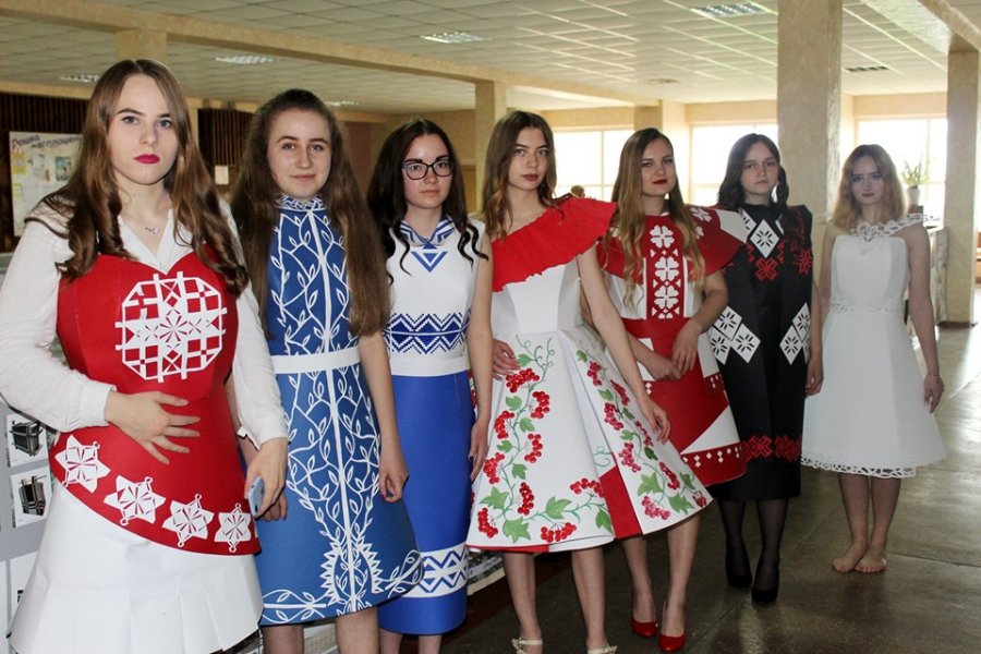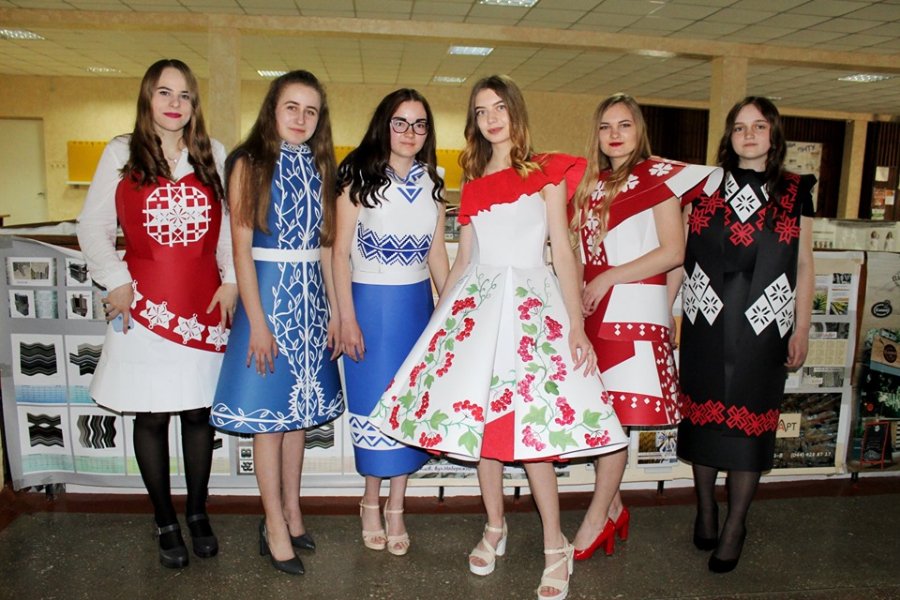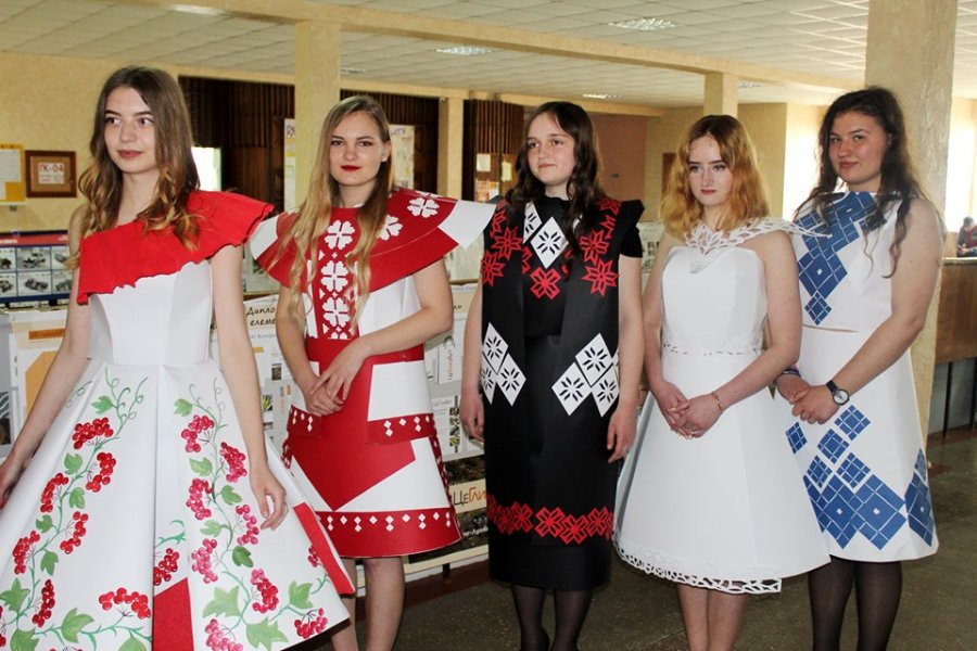 Білий по білому, контраст чорного та червоного, класичний чорно-білий, калина та геометрія – усі ці поєднання прикрашають чудові дизайнерські сукні, створені з паперу юними модельєрами. Цікаво, що сукні створювалися як справжні дизайнерські вироби: спочатку розроблялася модель, малювався ескіз, потім підбиралися етно-елементи, якими оздоблювали одяг, далі готувалася «викрійка» і лише тоді виготовлялася сукня. Так, одяг прикрашено геометричними та рослинними візерунками, які несуть в собі прихований зміст, що вкладали у вироби дівчата. Щодо оздоблення, то на моделях представлено три техніки: нанесення візерунку фарбами, аплікація і витинанка.