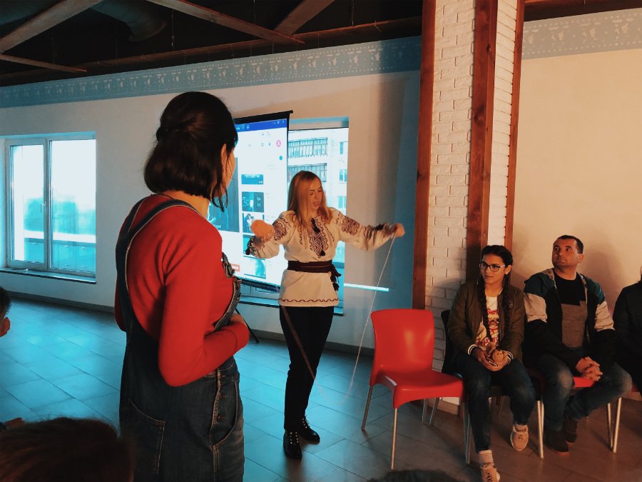 На заході був присутній English-коуч – Наталія Берестен, яка проводила навчальні інтерактиви, стмулювала знайомитись, спілкуватись та разом проводити весело час.