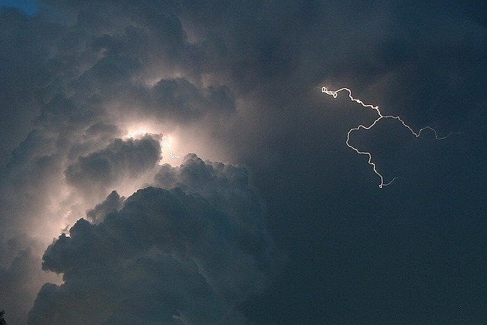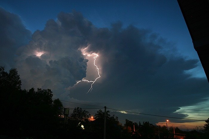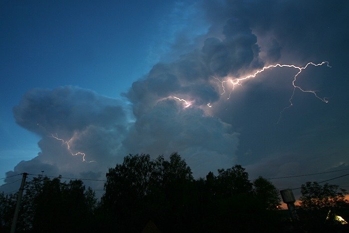 Проте й блискавиці над Луцьком були не менш потужні. Зокрема, кілька фотографій грози на свої сторінці у facebook опублікував історик Олександр Котис.