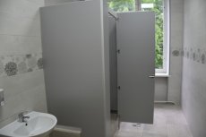 Тривають ремонтні роботи й у санвузлах у НВК “Загальноосвітня школа І-ІІ ступенів № 10 — професійний ліцей”. Тут також вкладають нову плитку, встановлюють сантехніку, замінюють вікна. Влаштують й дві душові кімнати у спортивному залі.