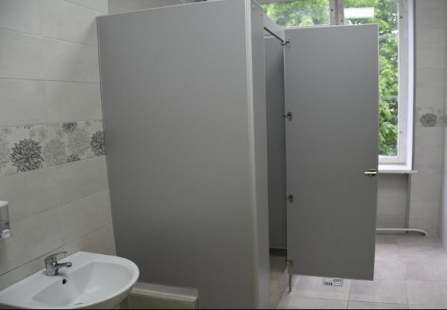 Зазначають, що у ЗОШ № 11 тривають ремонтні роботи у санвузлах. Нині тут будівельники вклали уже нову плитку, змонтували сантехніку. Незабаром встановлять перегородки.