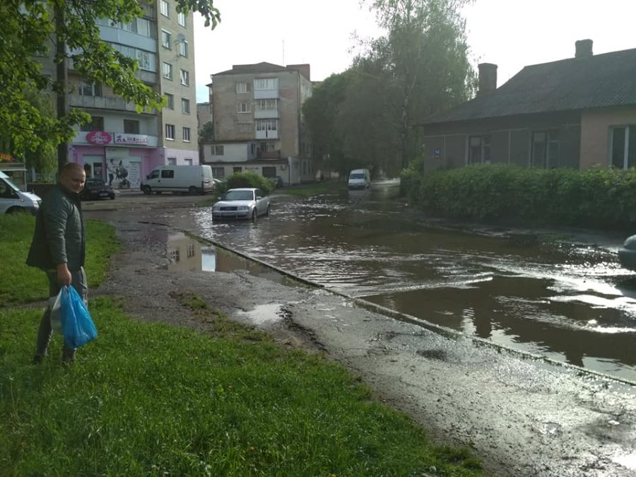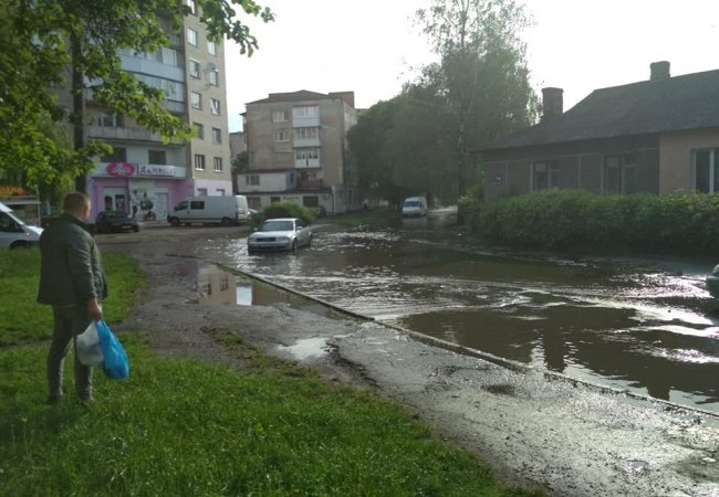 У Луцьку на вулиці Гулака-Артемовського повністю затопило проїжджу частину.