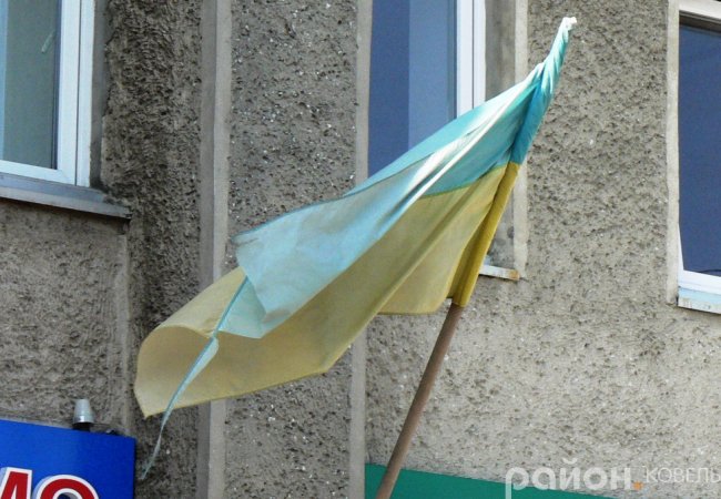 На будівлю ковельської поліклініки вивісили порваний державний прапор України