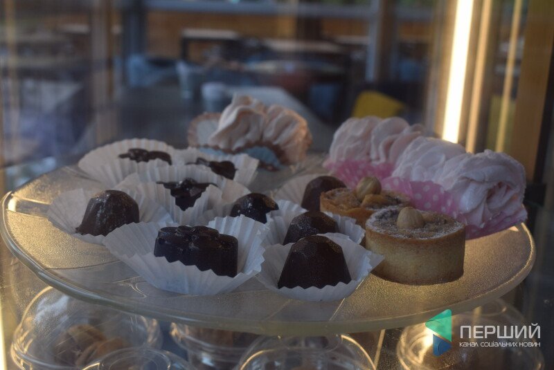 З десертів є зокрема макарон, зефір, тістечка, горішки з шоколодом, круасани з різними смаками (карамель, шоколад, полуниця, вишня).