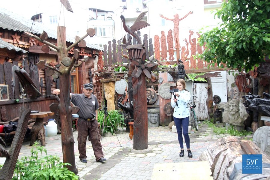 Майстер з вогнем у очах розповідає про те, як виготовив тридцять років тому «Дике поле», показує своє помешкання, де усе, навіть стеля і підлога, зроблені і декороване його руками.