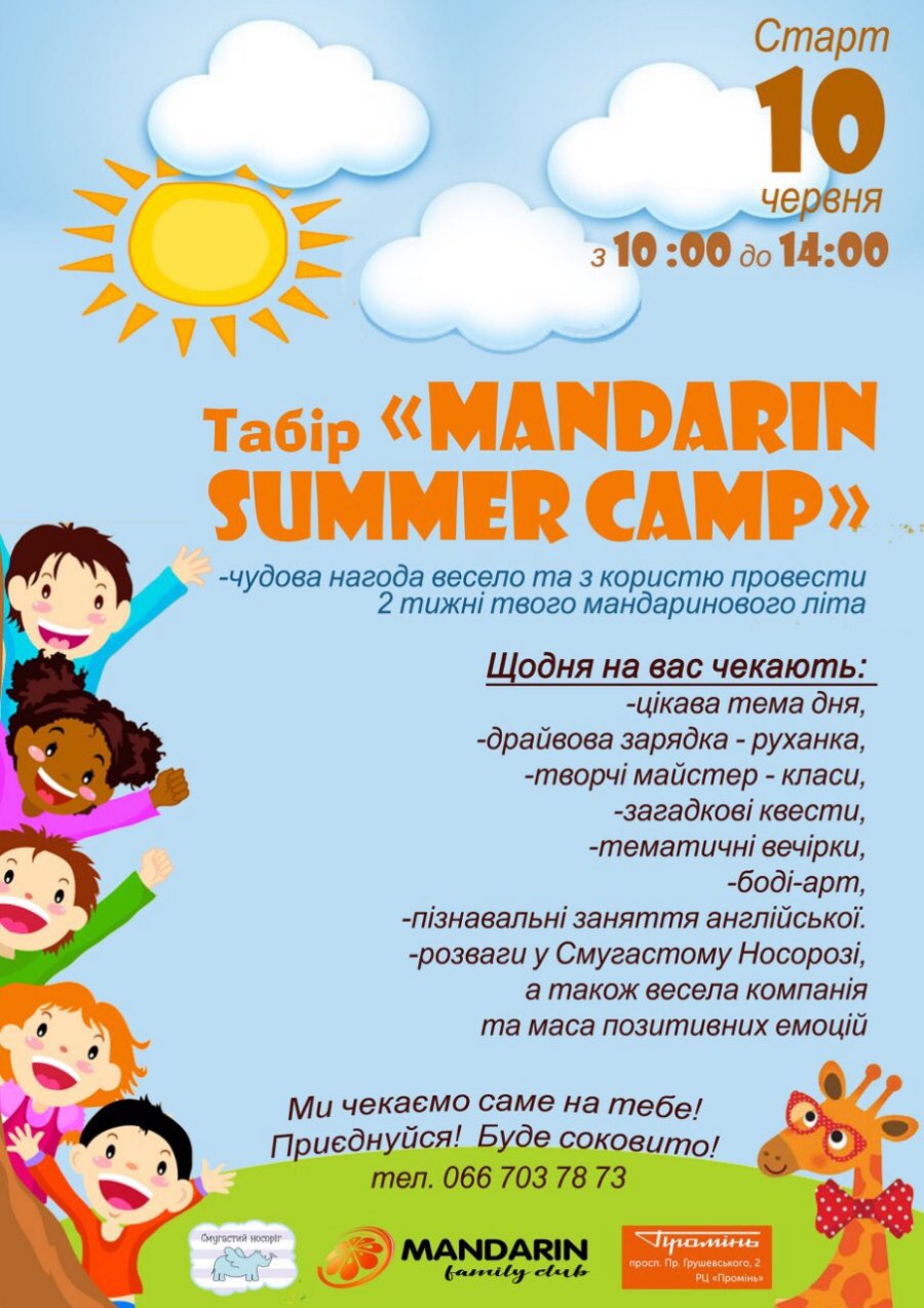 Англомовна школа Mandarin Family Club, що на 3-му поверсі РЦ «Промінь», організовує літній дитячий табір, який подарує масу яскравих емоцій.