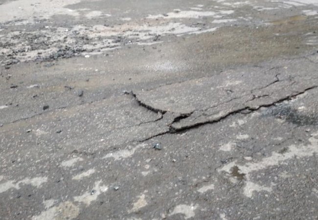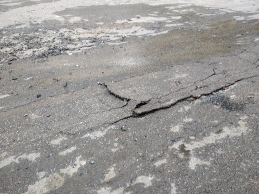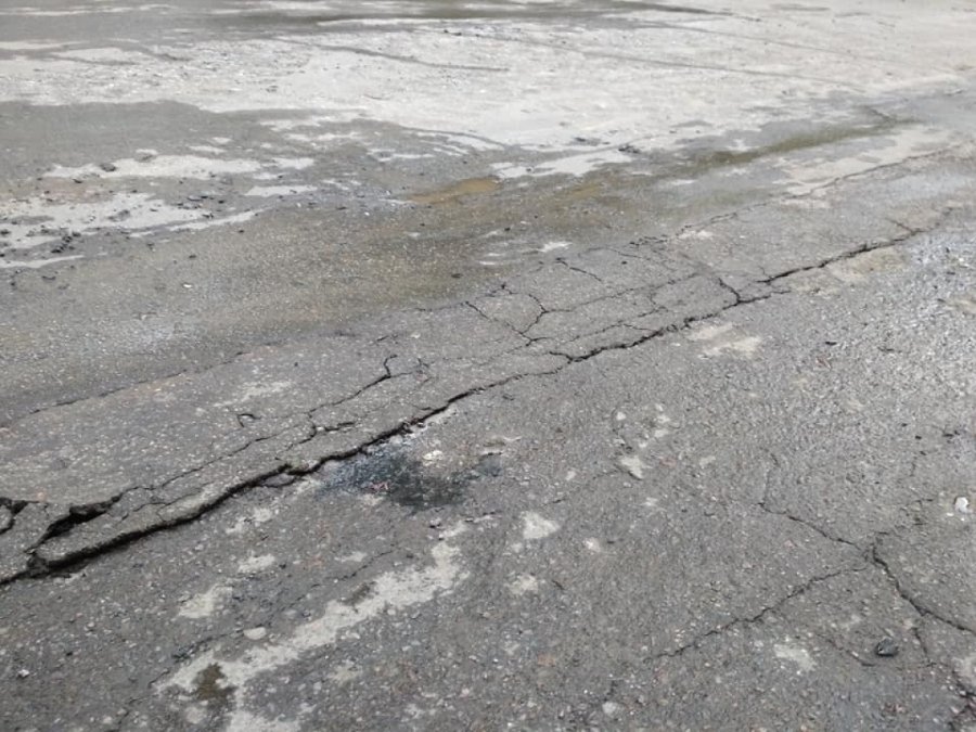 Як видно з фото, ймовірно, дорожнє покриття пошкодили важкою технікою.