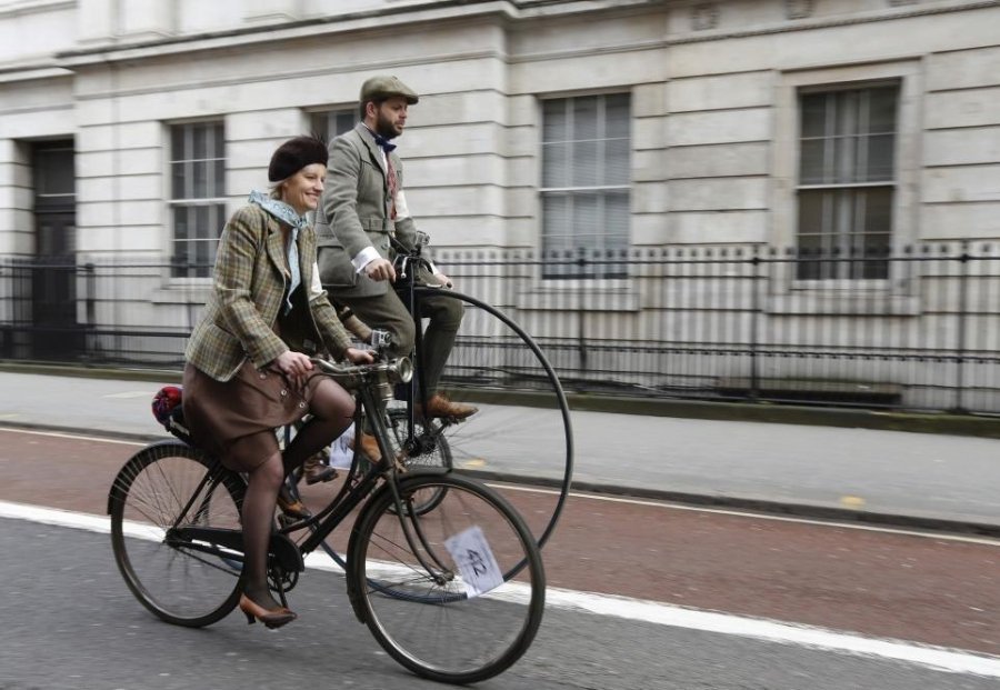 Ось і в Лондоні напередодні відбувся черговий заїзд на старовинних велосипедах і, по можливості, в старовинному одязі. У ньому взяли участь сотні велосипедистів, одягнутих по моді початку минулого сторіччя.