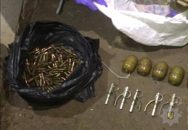Під час огляду місця схованки поліцейські виявили пакунок із п’ятьма гранатами «РГД-5» та запалами до них, а також, зокрема, понад 240 патронів калібру 7,62 мм та майже 50 патронів калібру 5.45 мм.