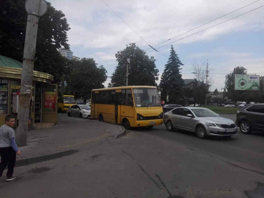 Зіткнення відбулося біля кільця, що поблизу розважального центру "Промінь". Автомобіль та маршрутка зазнали механічних пошкоджень.
