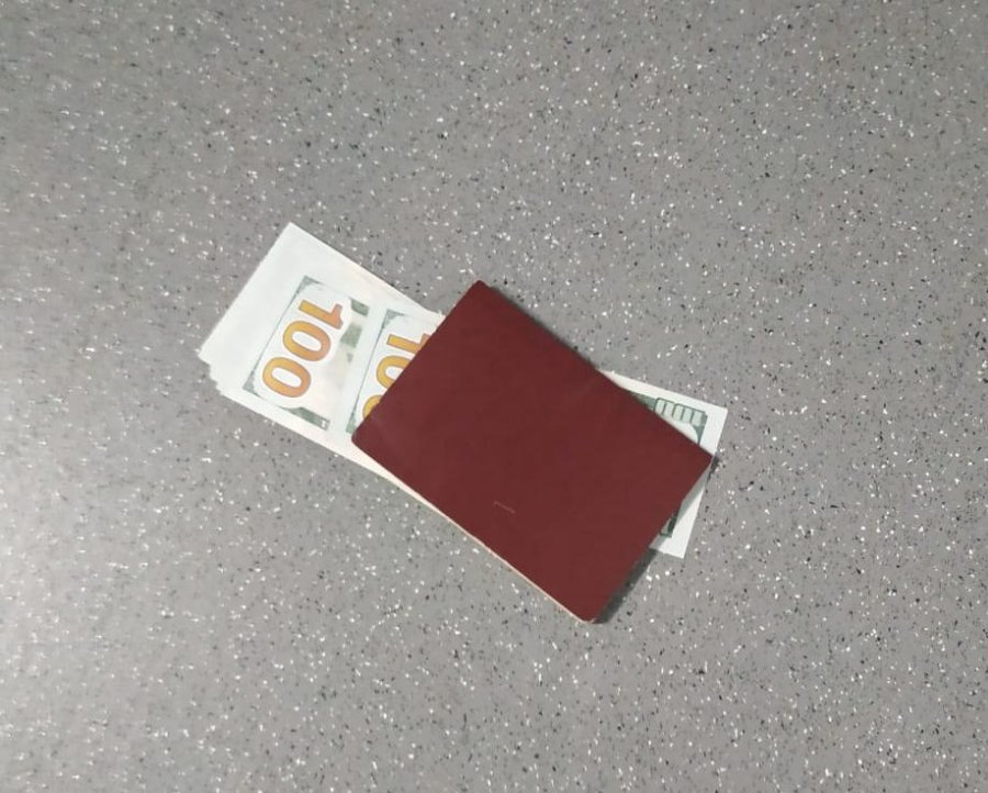 Під час оформлення пасажирів, які прибули із Мінська, охоронці кордону знайшли у залі на приліт паспорт громадянина Китаю, в якому було 1800 доларів США.