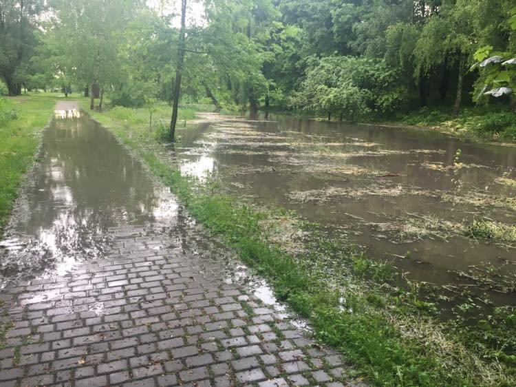 Зазначимо, що в деяких місцях вода повністю покрила доріжки в парку.