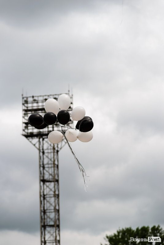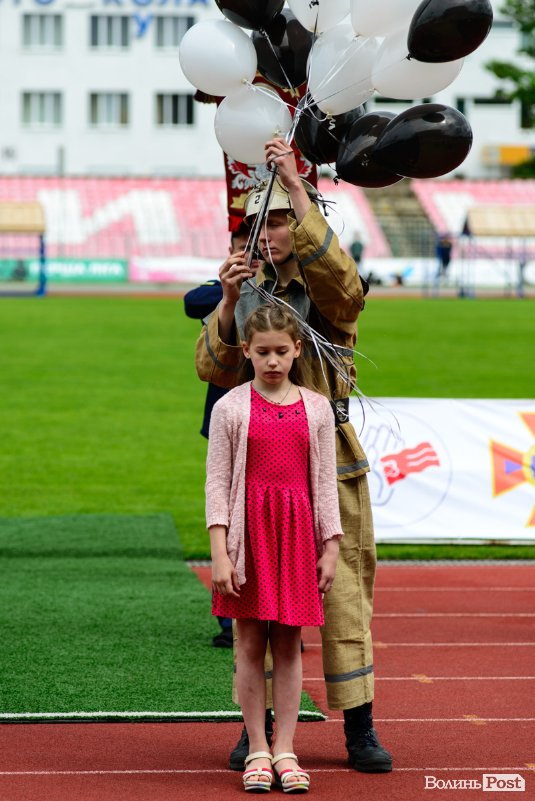 В пам’ять про вогнеборців у небо символічно випустили 28 чорно-білих кульок.