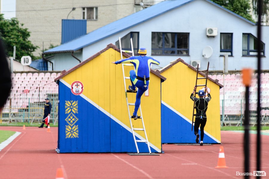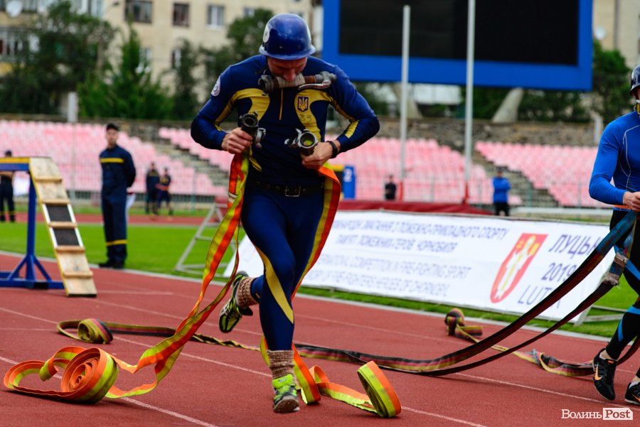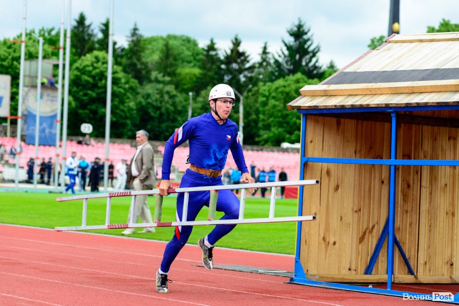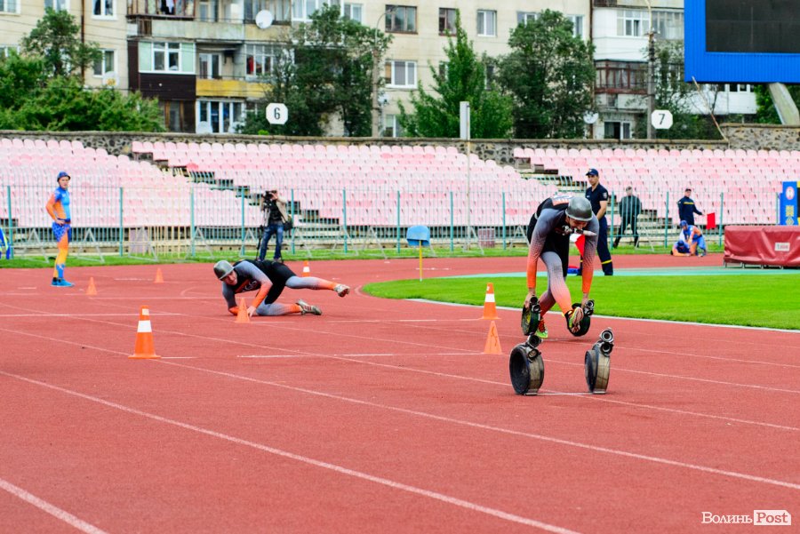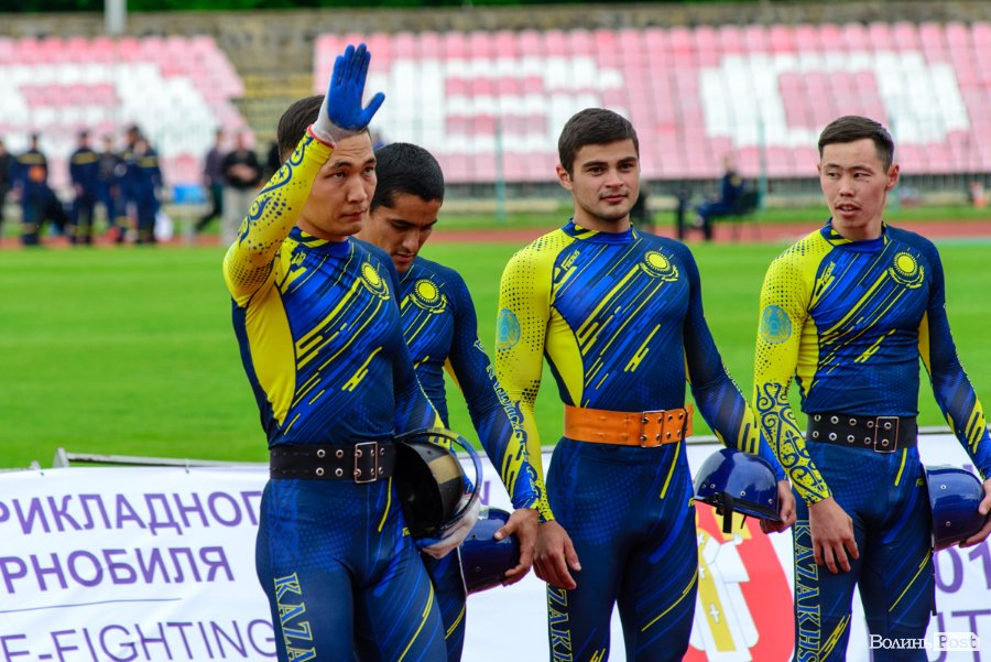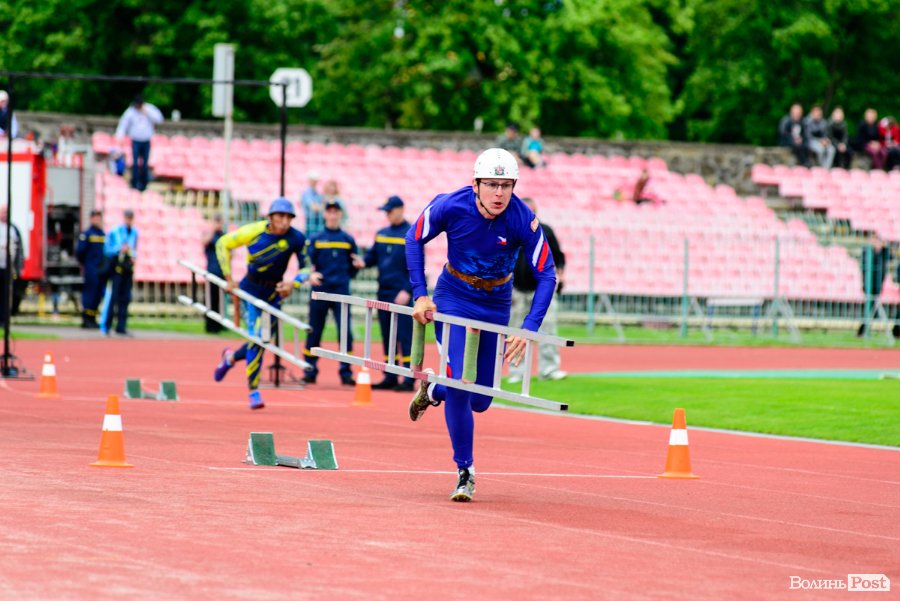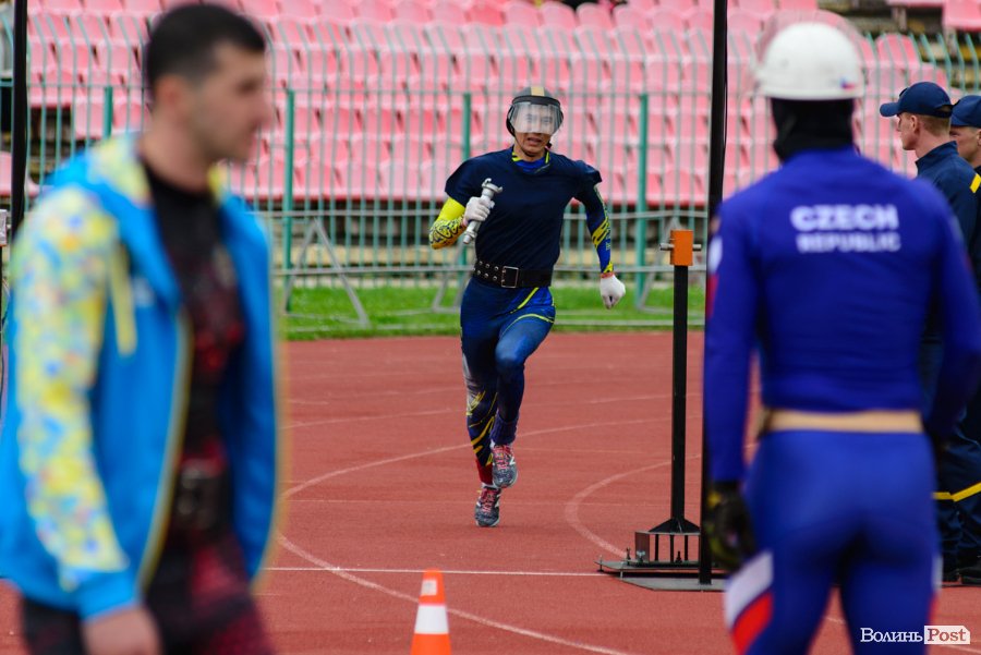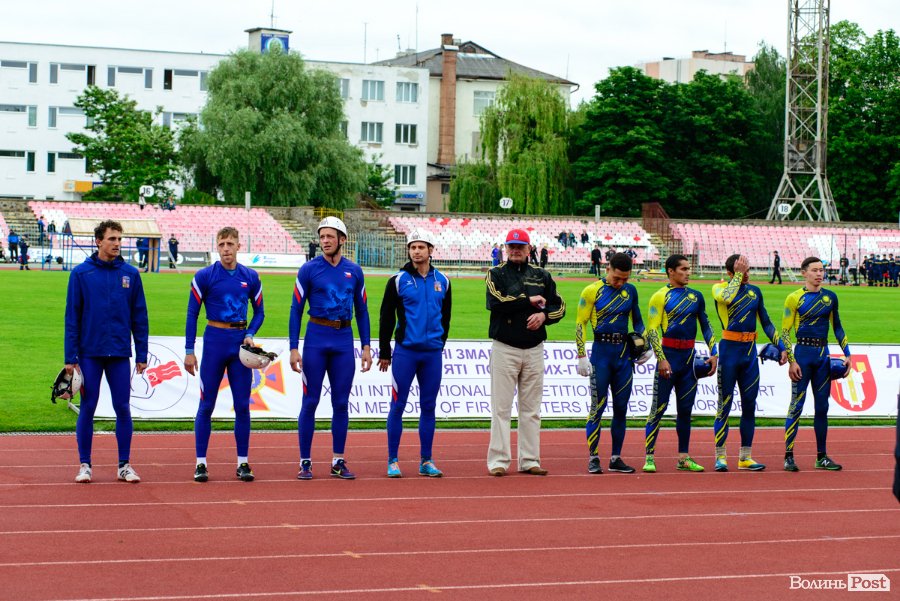 Опісля команди змагались у пожежній естафеті 4х100 метрів. Зрештою, після першого дня міжнародних змагань команда Волинської області перебуває на другому місці.