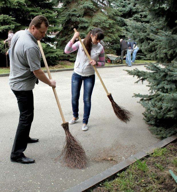 Прибирають свою ж загажену територію у середині управління!:) Вийшли б на вулицю, звні б поприбирали!!!