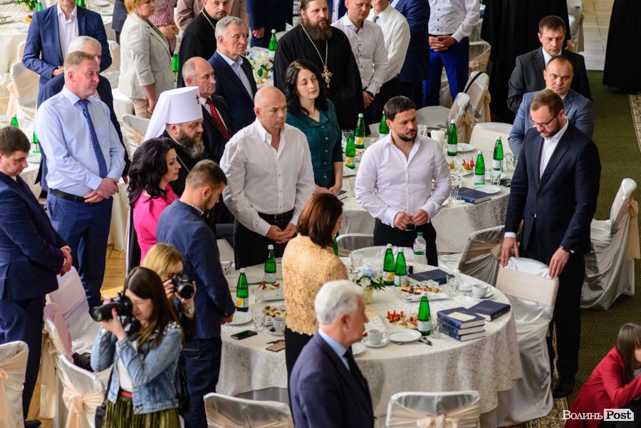 Поки запрошені займали свої місця, знайомилися та спілкувалися, у залі на столах, покритих білими скатертинами, для них поставили вишукані канапки та напої, а будівлю причепурили живими квітами у біло-блакитно-рожевих тонах. Загалом на молитовний сніданок запросили 180 гостей. Серед них – владика Михаїл, ординарій Луцької дієцезії Віталій Скомаровський, протопресвітер Луцького екзархату УГКЦ отець Терентій, нардепи Ігор Гузь, Ірина Констанкевич, Сергій Мартиняк, голова облради Ігор Палиця, забудовник Андрій Разумовський, головний військовий капелан області Михайло Бучак, мер Нововолинська Віктор Сапожніков, координатор молитовних сніданків у США, уродженець Волині Михайло Жовнір, координатор Національного молитовного сніданку США Даг Бьорлі. Сніданок розпочали з молитви «Отче наш», яку виконав аррхієрейський хор «Оранта».