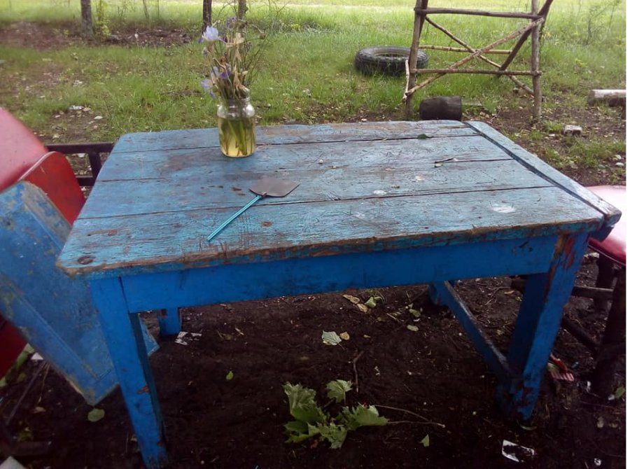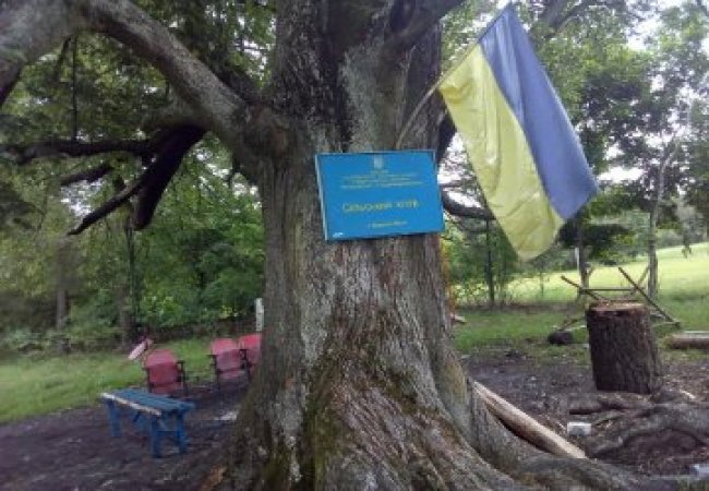 Все, що могли, місцеві школярі зробили: столик, дровітня, гойдалка. Тобто у міру своїх можливостей облаштували собі місце відпочинку. А на величезному дереві, під кронами якого і є так званий «клуб», повісили вивіску, яка була на старому приміщенні, та Державний прапор.