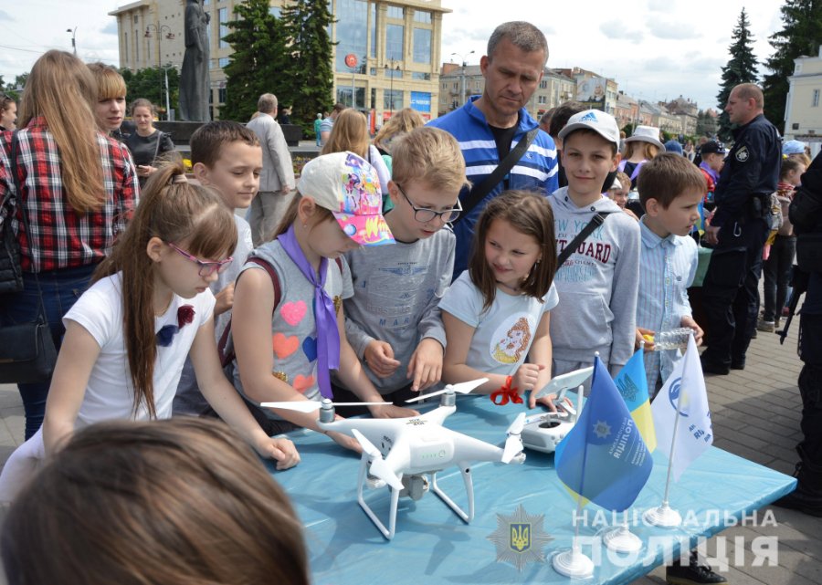 Квадрокоптери і макети зброї: у центрі Луцька поліцейські влаштували дітям свято