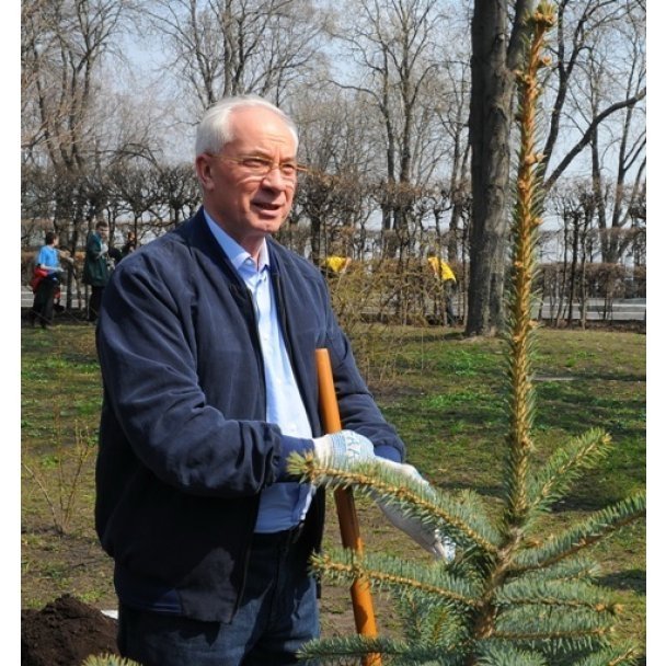 Одну ялину Азаров висадив у столичному парку Вічної Слави біля пам'ятника Герою ВВВ - льотчику Івану Кожедубу.