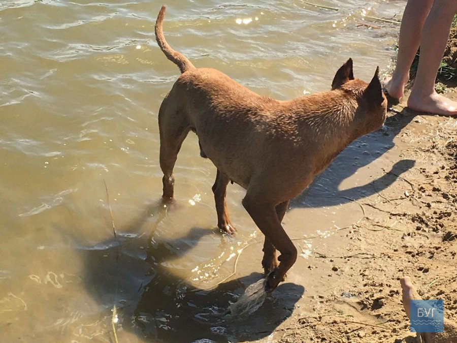 Пес йшов за дітьми до озера з Низкинич. Бігає біля водойми та чіпляється до відпочивальників.