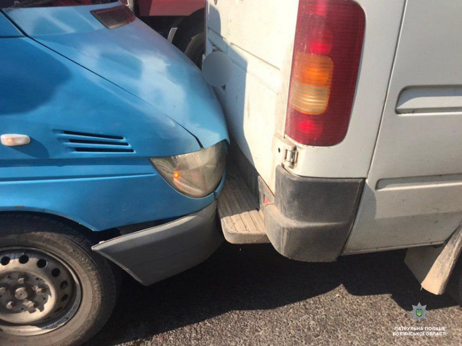 В аварії зіткнулись два автомобілі Mercedes та один Volkswagen LT35.