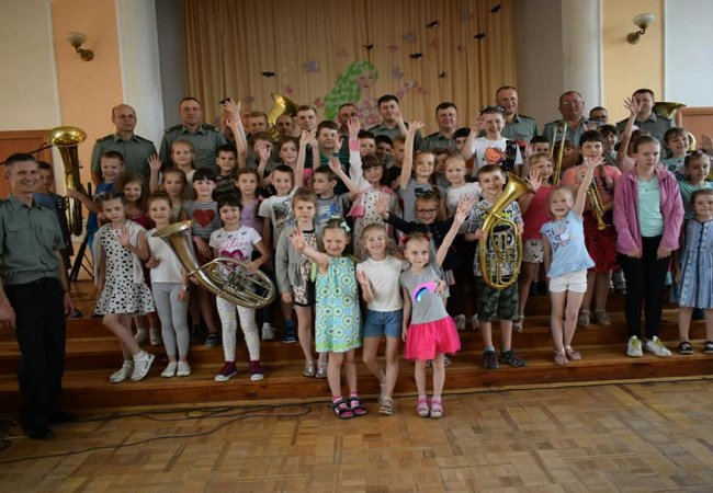 Музиканти розповіли дітям про військовий оркестр, його суть і особливості. Також вони зіграли кілька творів відомих українських композиторів.