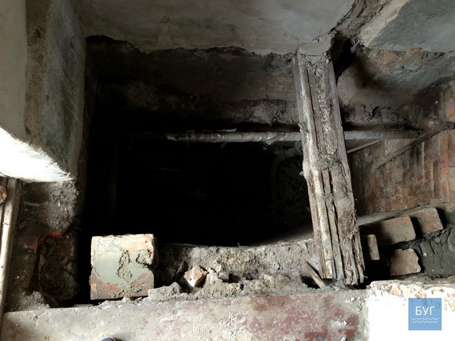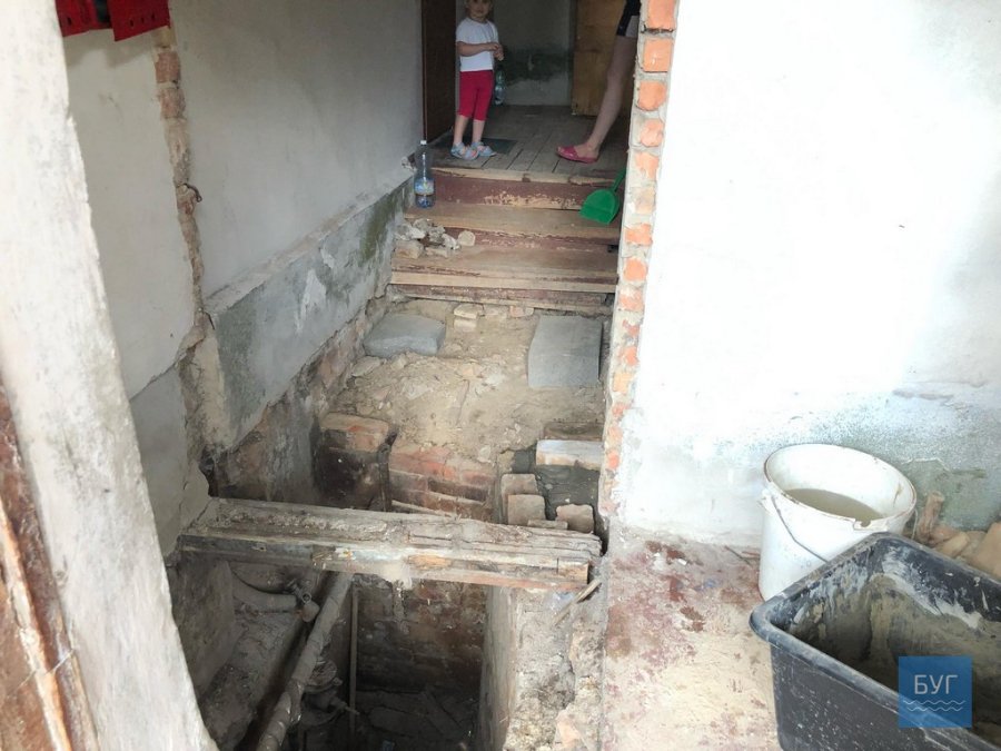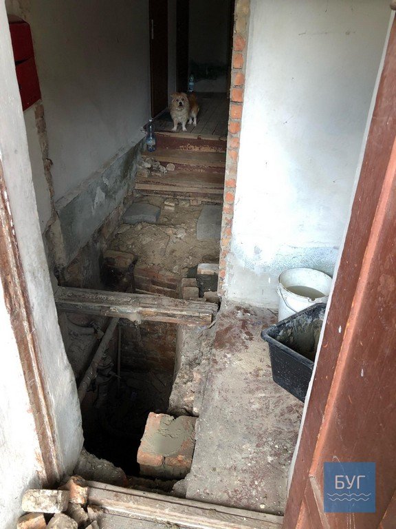 Журналістам БУГу розповіли, що з проблемою прогнилої підлоги зверталися кілька років тому, навіть не пам’ятають точно коли. Результату не було, люди самі купили дошки та накрили підлогу. За роки вона “віджила своє” і добре, що не дійшло до біди. Яма в під’їзді глибиною близько 2-х метрів.