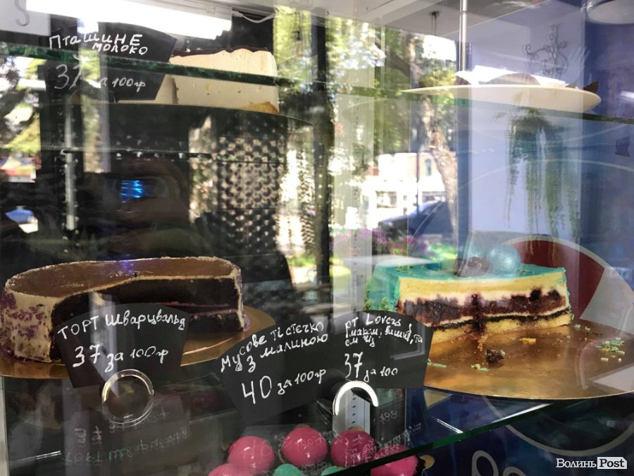 До кави відвідувачам пропонують спробувати смаколики власного виробництва. Наприклад, 100 грамів торта «Пташине молоко» обійдуться у 31 гривню, «Шварцвальд» – 37 гривень, мусового тістечка з малиною – 40 гривень.