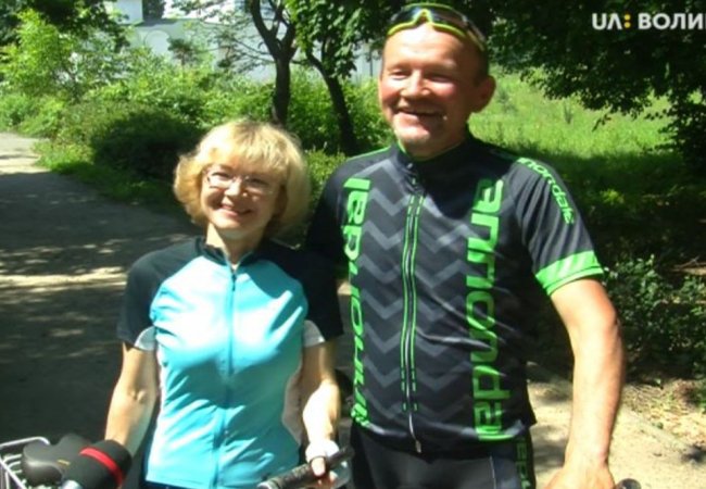 58-річний В’ячеслав Березін та 61-річна Людмила Леонтіва разом приїхали до луцького парку на тренування. В’ячеслав розповідає, з Людмилою одружені 15 років. Відтоді тренуються разом. Людмила каже - велосипедні подорожі та спорт невід’ємна частина їхнього життя. Щоразу подружжя долає відстань не менше 30 кілометрів за тренування. Себе називають спортсменами аматорами.
