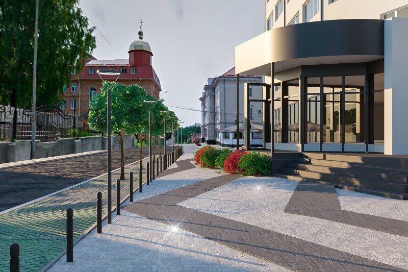 «Ми вирішили об’єднати пішохідну зону на Театральному майдані і на вулиці Лесі Українки. Зараз вони розірвані, бо всі паркуються біля магазину «Сім23». Ми ж залишимо в’їзд лише біля Палацу культури та з боку Градного Узвозу. Поставимо обмежувачі, щоб в пішохідну зону не могли заїжджати автомобілі», - пояснює дизайнер.