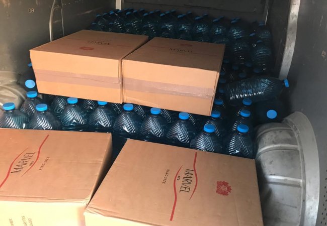Під час огляду у авто виявлено 4 пакунки сигарет без акцизних марок та 200 пластикових ємностей, по 5 літрів кожна, спирту без будь-яких маркувань.