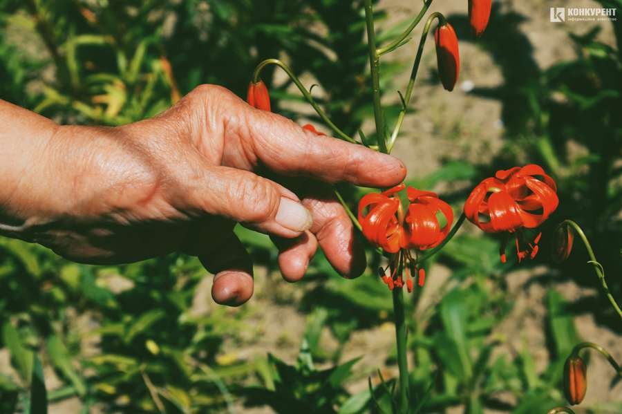 Також вона провела цілу екскурсію своїм двором, де на кожному кроці росли сортові півонії, різноманітні іриси, чекали, аби розквітнути, чимала кількість лілій, грілися на сонці троянди та багато інших рослин.