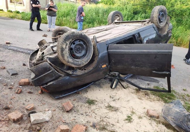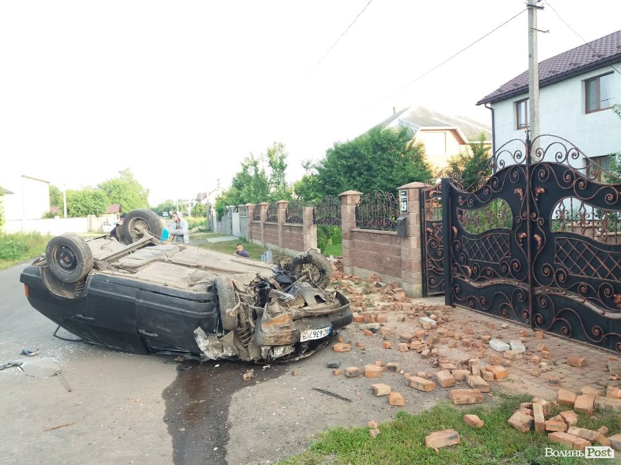 У селі Гірка Полонка Луцького району автомобіль ВАЗ 2109 під ранок 16 червня влетів в яму, а після цього розтрощив огорожу біля будинку та перекинувся на дах.