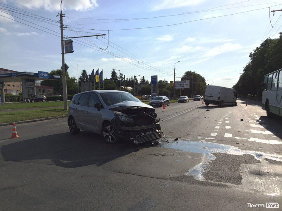 На вулиці Рівненській, що у Луцьку, трапилася потужна ДТП за участі легковика Renault та буса.