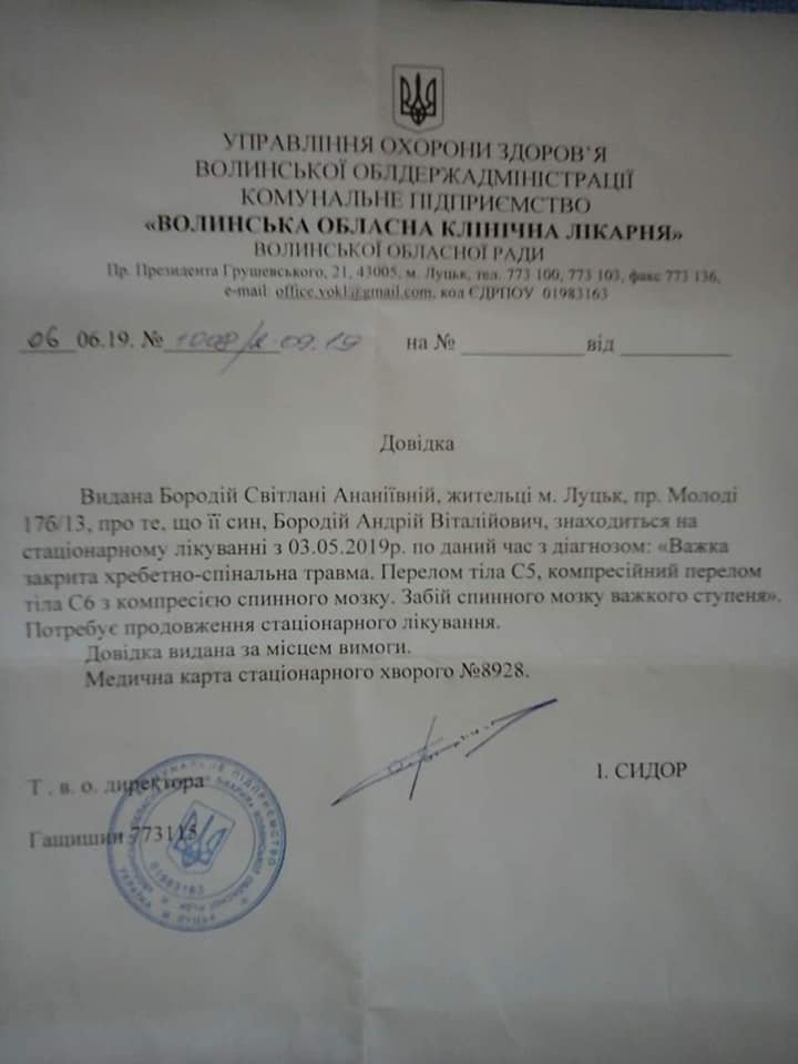 Зазначається, що 2 червня внаслідок нещасного випадку отримав тяжку травму атовець Андрій Віталійович Бородій.