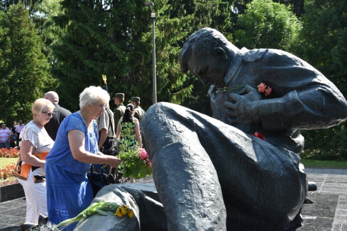 Захід розпочався із хвилини мовчання. Опісля панахиди присутні поклали квіти до пам’ятного знаку «Поранений солдат», прихиливши голову із пошаною до загиблих.