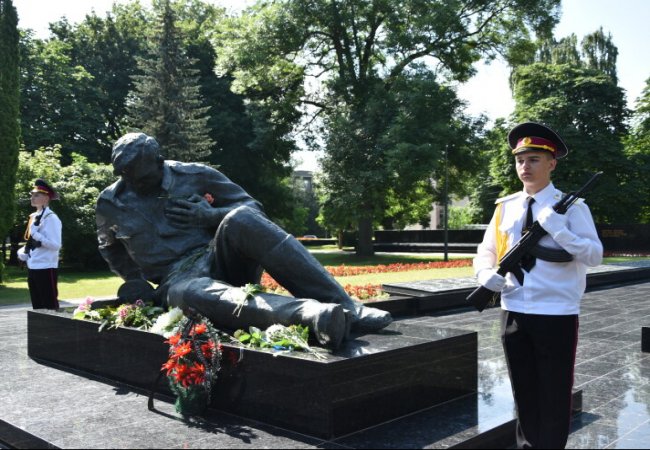 Відтак сьогодні, з нагоди Дня скорботи і вшанування пам’яті жертв війни в Україні, на меморіальному комплексі «Вічна Слава» відбулась панахида та покладання квітів до пам’ятного знаку «Поранений солдат», - йдеться на сайті Луцької міської ради.