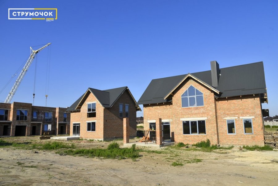 У житловому комплексі «Струмочок», який зводить Будівельна компанія «Інвестор» у селі Струмівка, завершили встановлювати вікна в першій секції таунхасів, мурують другу секцію та готують ділянку під будівництво семи котеджів.