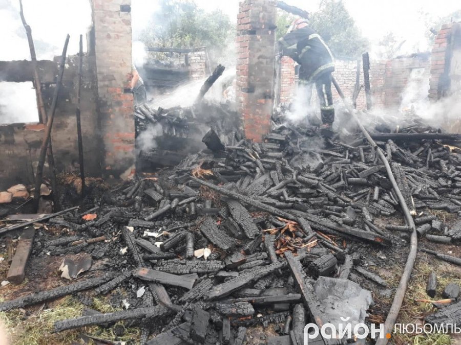 На місце події виїхали 10 ДПРЧ м. Любомль та МПО Головне. Внаслідок пожежі знищено покрівлю, перекриття, інвентар, дрова, сіно.