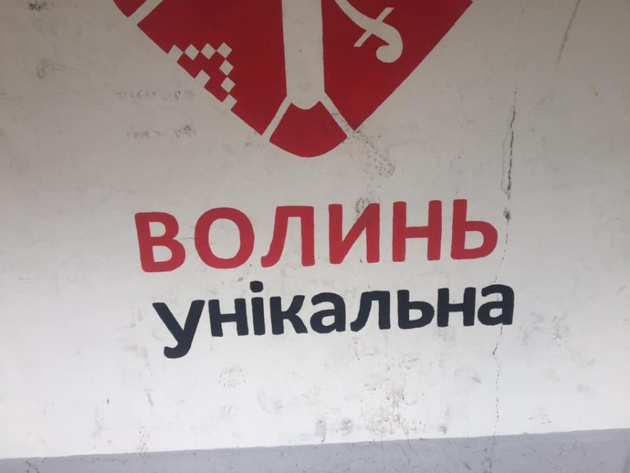 З фото, які опублікував пан Володимир, на стінах зупинки видно брудні сліди від взуття. "Походили" також і по стіні, де зображений логотип Волині.