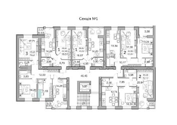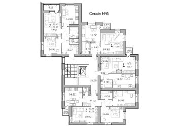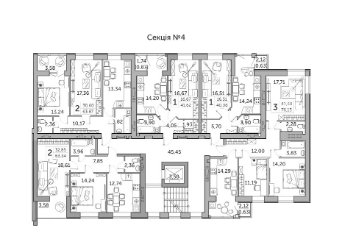 однокімнатні: 40,98 м2; 41,62 м2; 44,19 м2; 45,64 м2