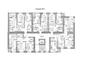 трикімнатні: 76,13 м2; 76,13 м2; 82,05 м2