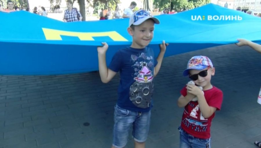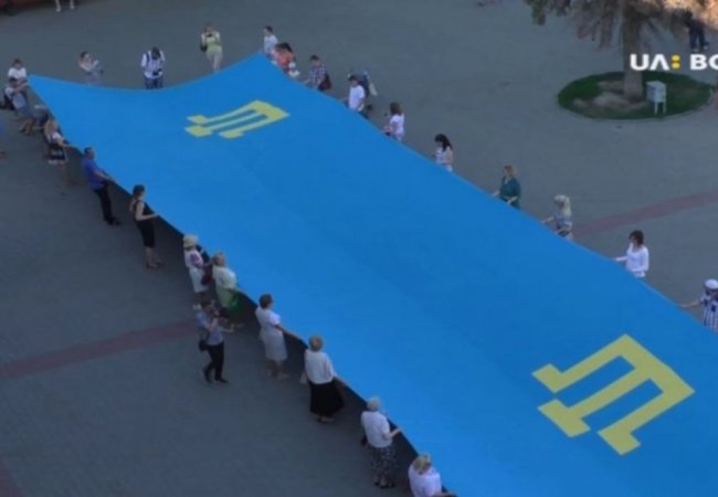 Стяг розміром 45 на 6 метрів розгорнули активісти громадської організації «Кримські татари», - йдеться у сюжеті Суспільного Волині.