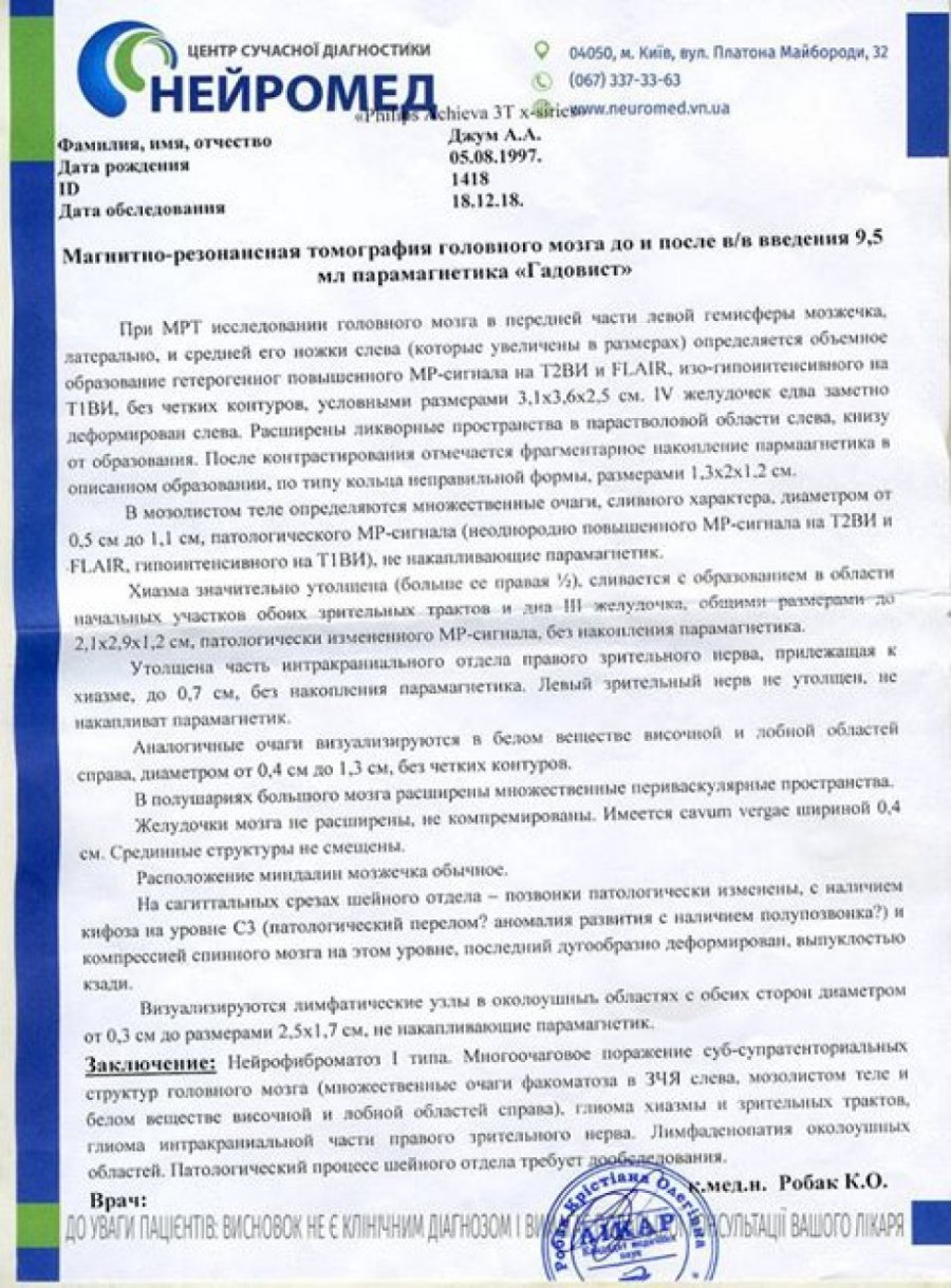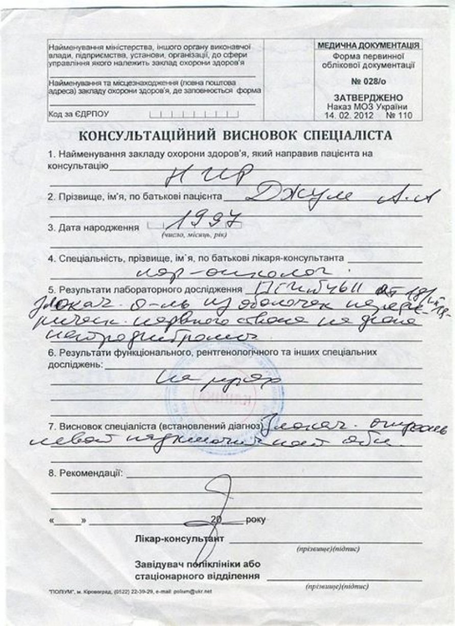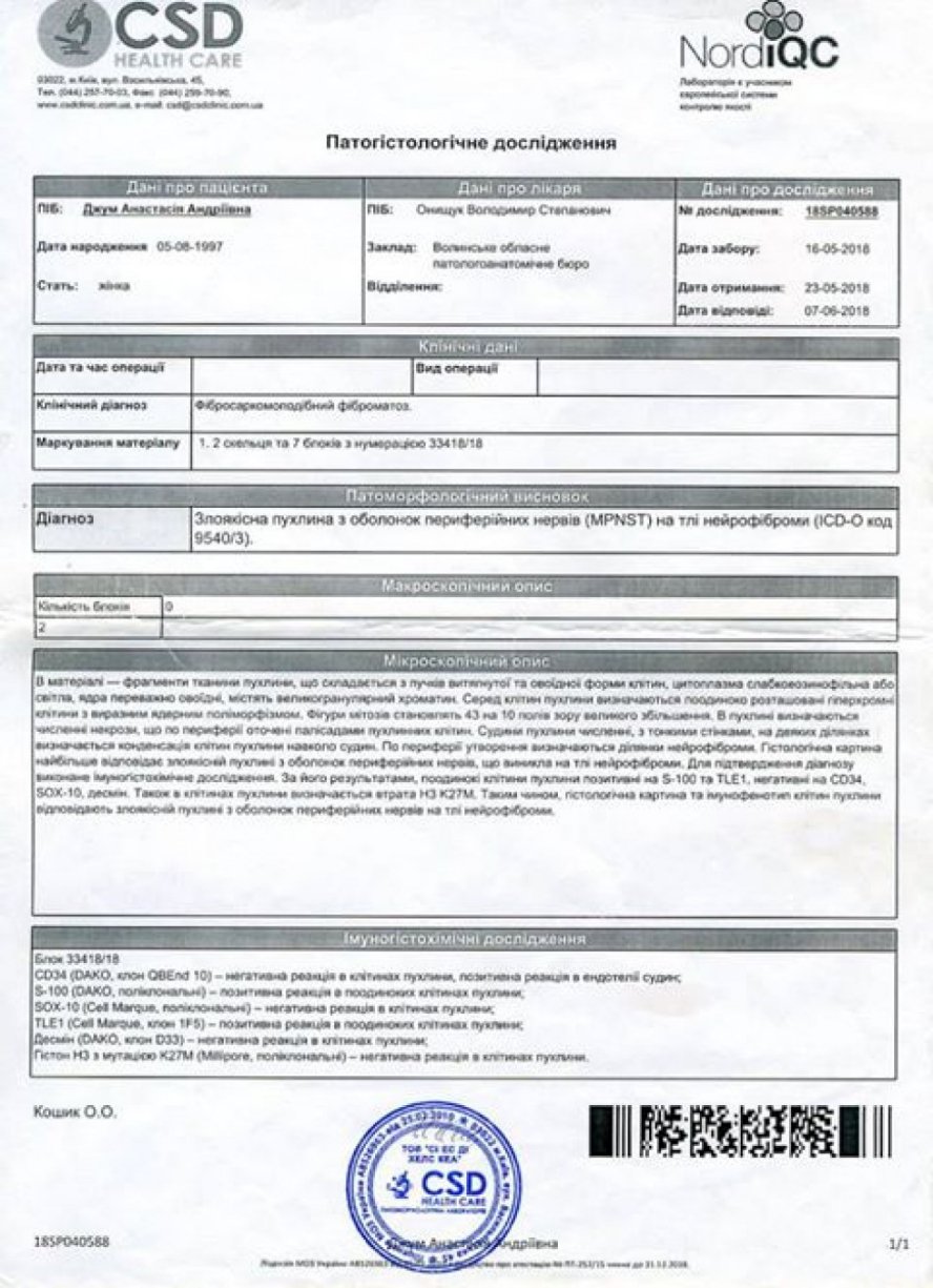 Робили ще МРТ на голову. В голові також є пухлина, також операція. Дякую всім людям, хто допомагав мені і допомагає зараз в тяжкий час. Дай боже всім здоров'я і божого благословення», – розповідає Анастасія Джум.