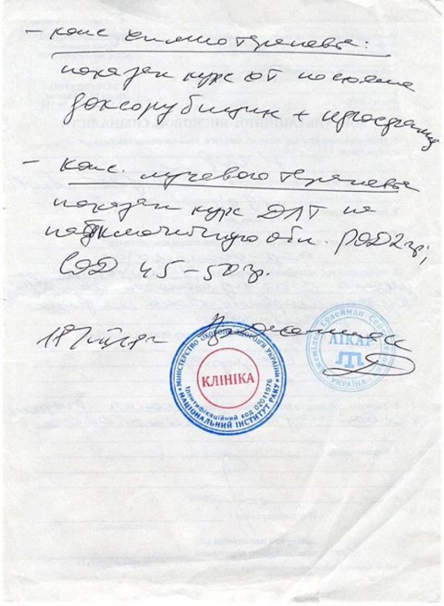 «Нещодавно я була на консультації в онко. Мені зробили комп'ютерну діагностику. Лікар сказав, що треба терміново видаляти ще одну пухлину на шиї. Це буде третя операція, але складна, тому що пухлина глибоко захована. Я вже пройшла чотири курси хіміотерапії і 30 днів радіовипромінювання.