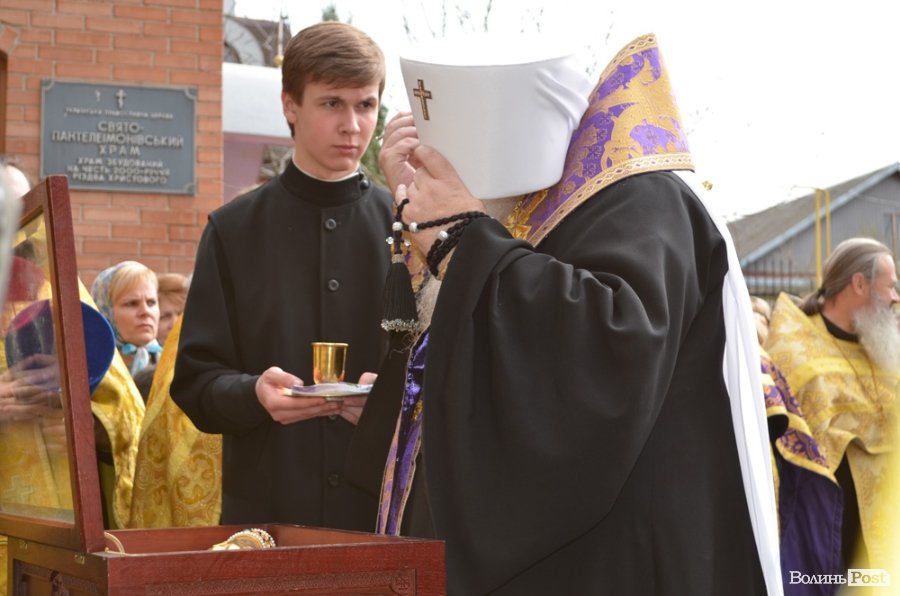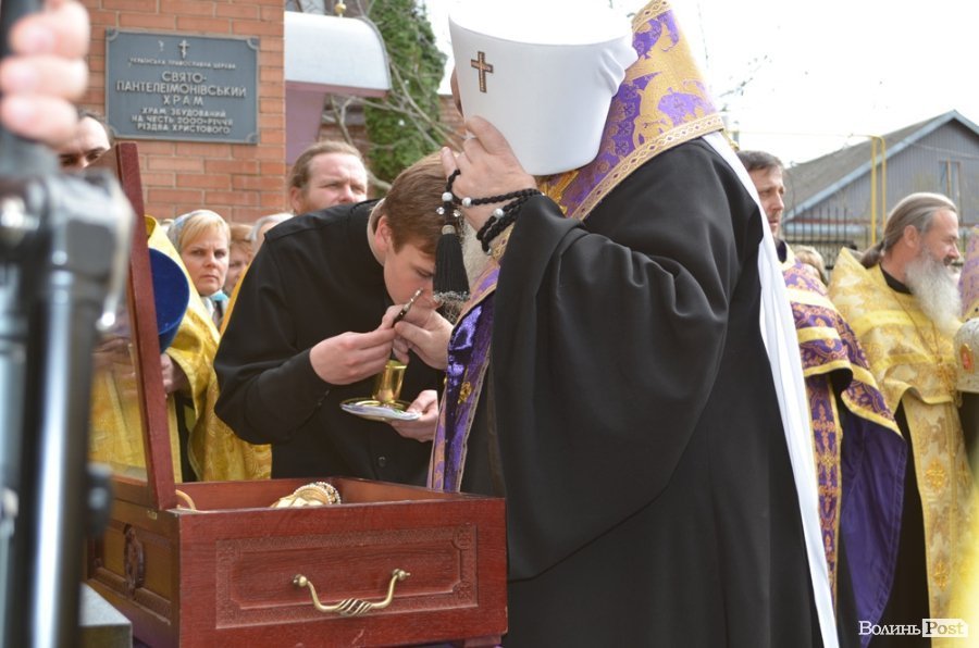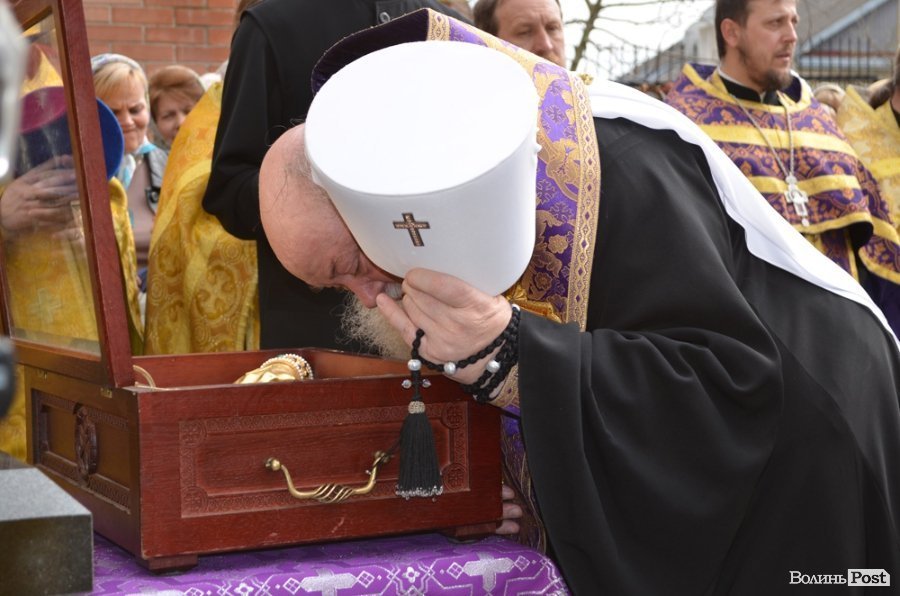 Біля Свято-Покровського кафедрального храму відбулося богослужіння, опісля якого митрополит Волинський і Луцький Ніфонт повідомив, що храм, де зберігатимуться мощі, буде відкритий цілодобово.